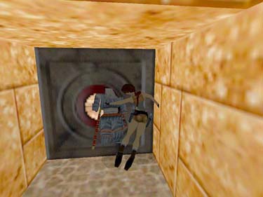 This bad guy attempts a trick normally left to Lara - going through the walls...but then...