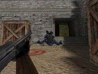 I was at a LAN party last night (well...this morning : ), where someone decided that everyone should upgrade to Counter-Strike 1.0. Something went very, very wrong, and as a result everyone started floating around the map with their legs at the same height as their chest. I haven't seen something so funny in a *very* long time, so I thought I'd share it with you. Thanks go to Matt Safe-T-Wilson who helped me get this capture.