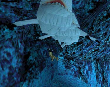 Something strange is going on deep beneath the sea, as Lara searches for the legendary Seraph. Perhaps it's something involving nuclear waste, because that shark has suddenly developed a new set of fins...either that or the second shark is getting unnecissarily friendly. Completely apart from that, Lara seems to have discovered an innovative way to plough through solid rock.