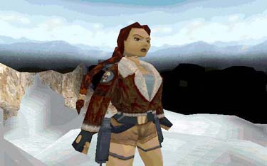 Just a nice shot of Lara on top of a mountain, plait streaming out in the wind...