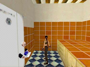 Lara looks the other way as her butler demonstrates his ability to stretch the very fabric of space. These two great screenshots very kindly provided by Nathalie and Simon Baldo !