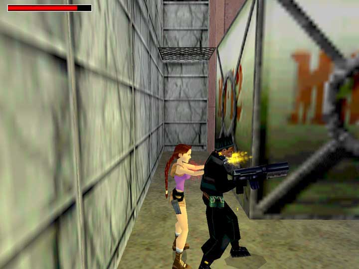 Lara demostrates the ancient martial art of reaching through someone's chest to trim their beard. This screenshot is from the custom level 'Base Near The Ruins v.2' by Sakiel. Lara looks great in purple. ^_^
