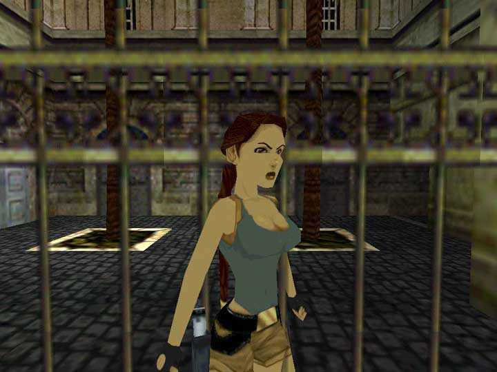 ...with fairly good results ! It's worth noting that you can sometimes walk through gates from the wrong side - here's Lara a la the T-1000 from Terminator 2. ^_^