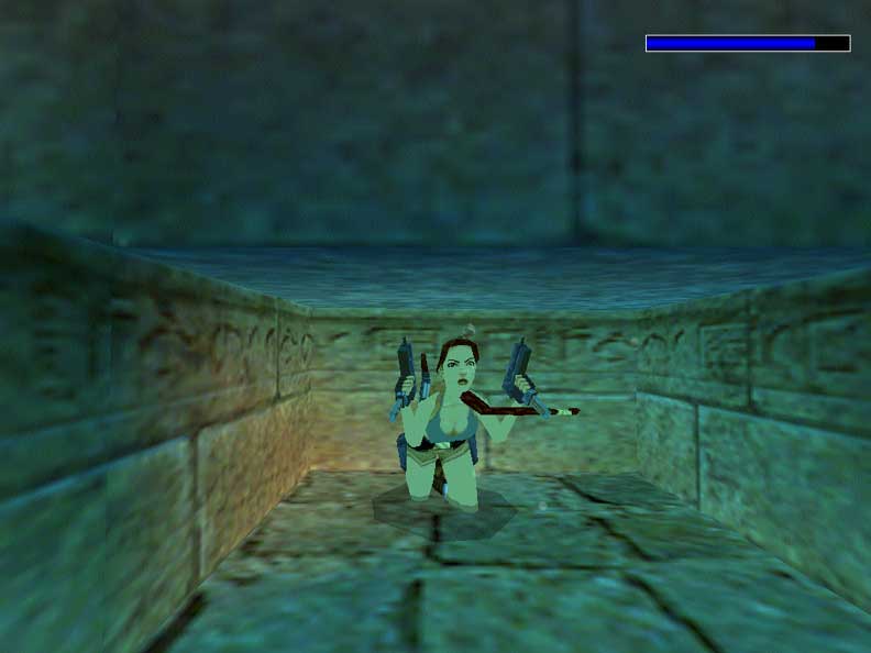 Lara has discovered the secret of waterproof Uzis.